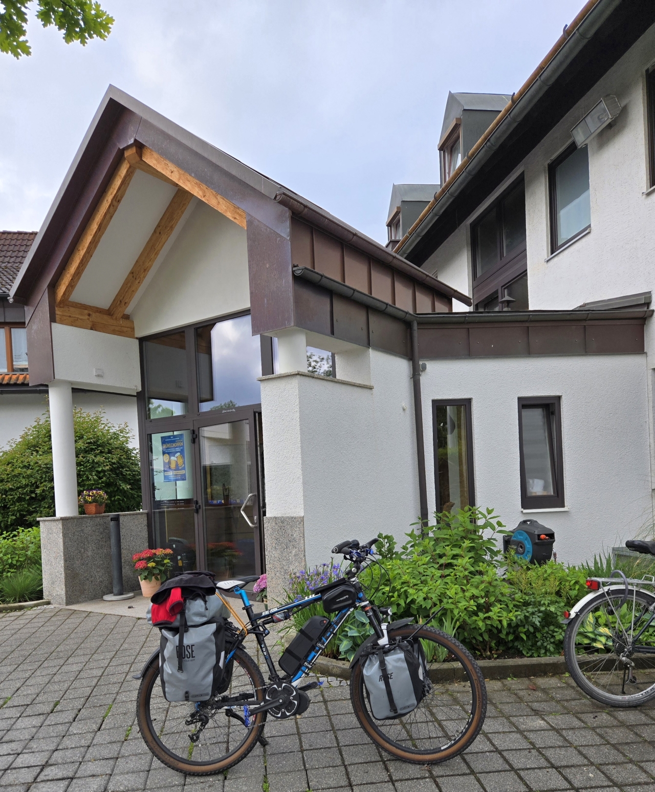 Nach meinem Check-in brachte ich mein E-Reiserad in die großzügige Garage und schloss die beiden Akkus an das Stromnetz an. Danach machte ich mich mit meinem Gepäck auf den Weg zu meinem Zimmer.