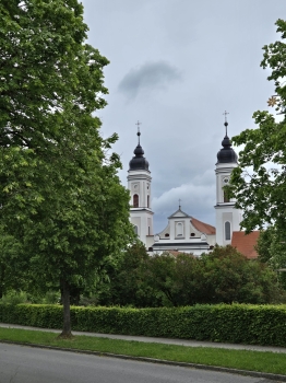 Vor den Toren des Kurorts, am historischen Kloster Irsee, holte mich das Wetter ein. Ein kräftiger, böiger Wind brachte die ersten Regentropfen.