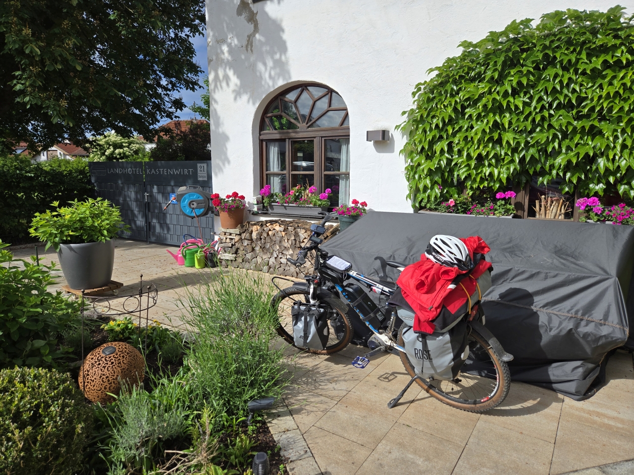 Nachdem ich meine Zimmerschlüssel bekommen hatte und ich mein Rad in einer Garage unterstellen konnte, brachte ich meine Utensilien aufs Zimmer.