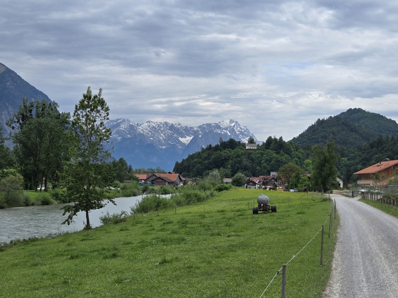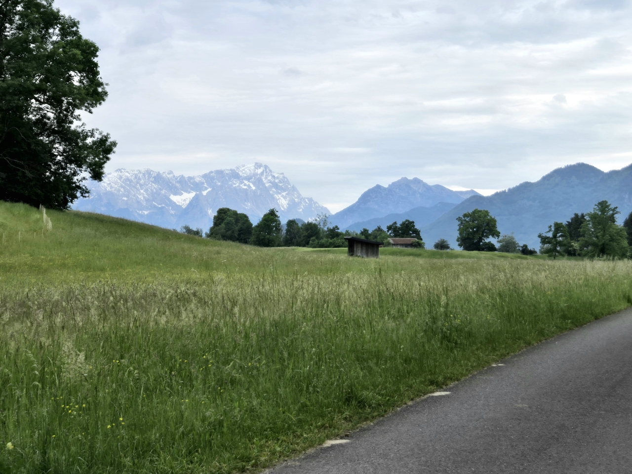 Ich folgte dem Radweg in Richtung Garmisch-Partenkirchen und Eschenlohe. Während sich die Berge näherten, änderte der Radweg hinter Eschenlohe seine Richtung, nach Bad Kohlgrub.