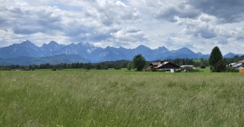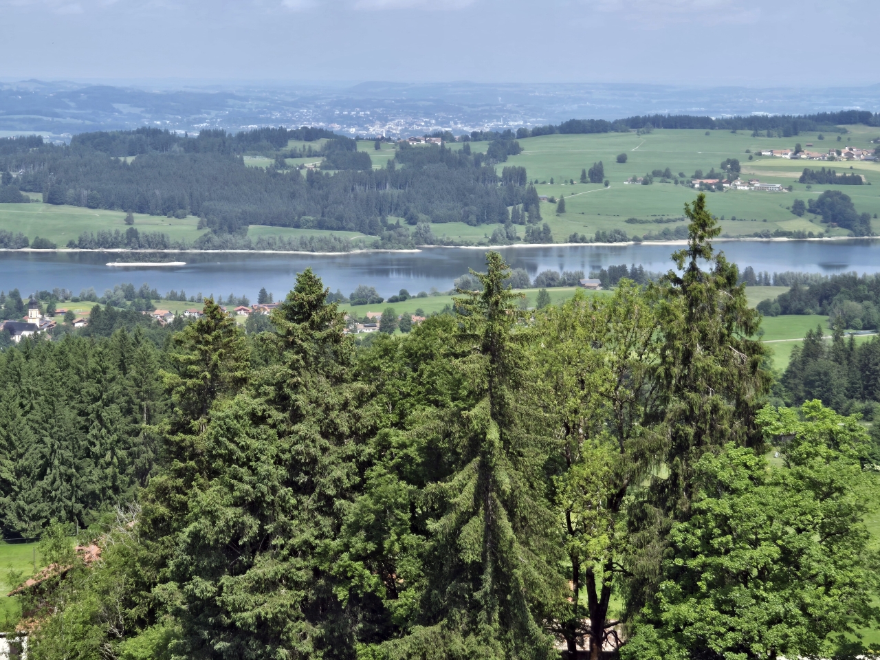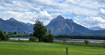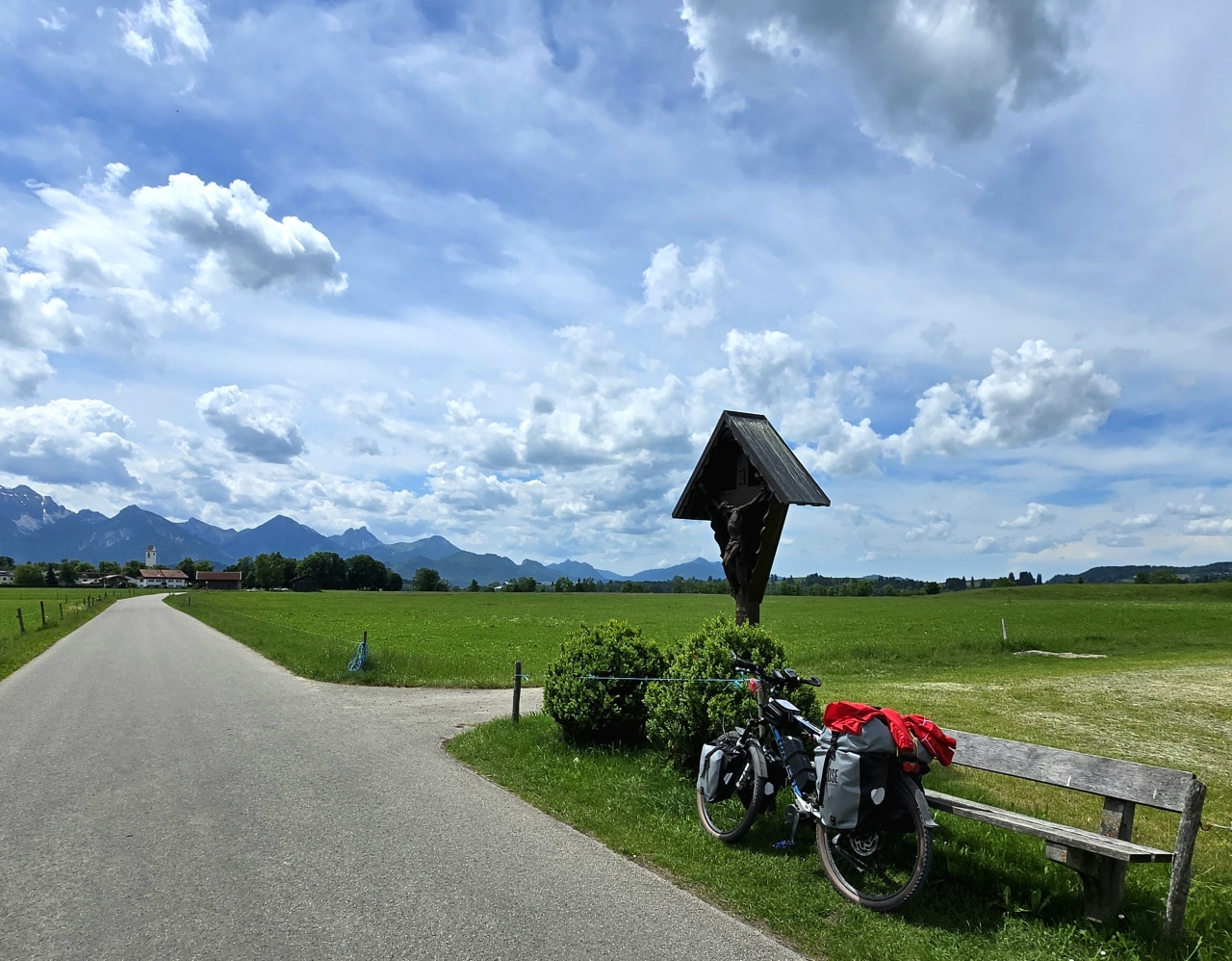 Hier waren die Temperaturen schwülwarm, bei nur leichtem Wind. Ich setzte meine Fahrt in Richtung Halblech bis Füssen fort. Der BoKö verlief parallel zum Bannwaldsee, näherte sich dem Forggensee und führte mich schließlich entlang dem Hopfensee nach Hopfen am See.