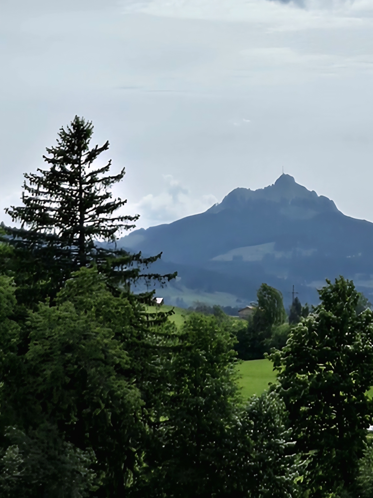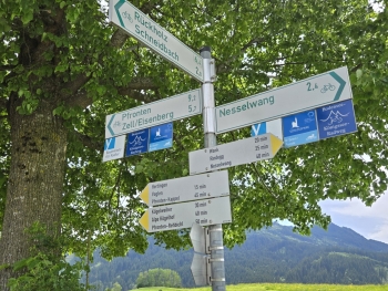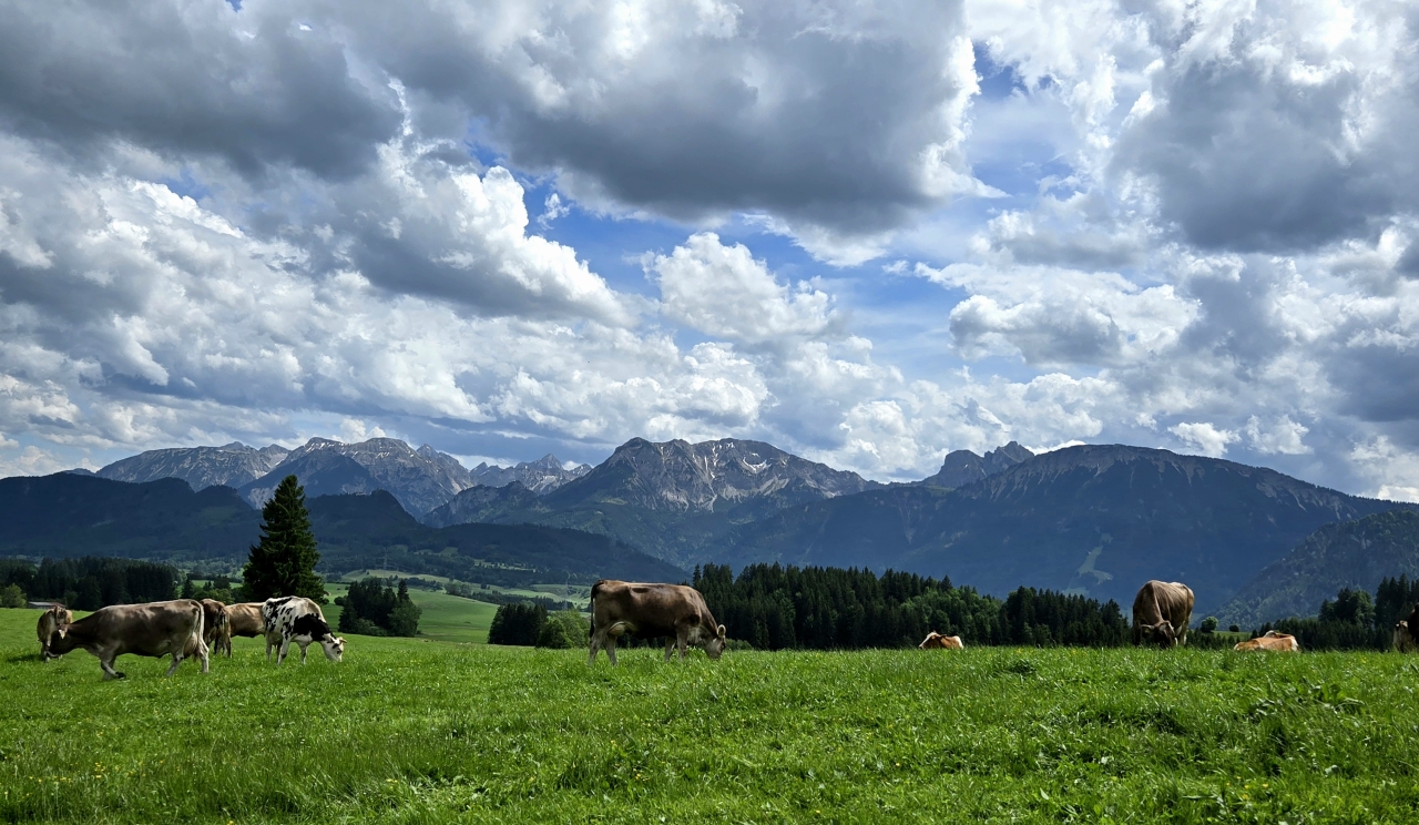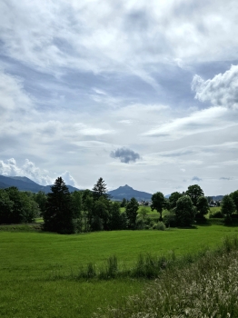 Aus Füssen hinaus führte mich der BoKö, vorbei am malerischen Hopfensee, durch das idyllische Ländle und hinauf in die Höhen oberhalb von Pfronten Zell. Langsam näherte ich mich dem kleinen Örtchen Nesselwang, und schon tauchte der mächtige Grünten auf, der als stolzer Wächter des Allgäus bekannt ist – sein markanter Gipfel war nun endlich in Sicht.